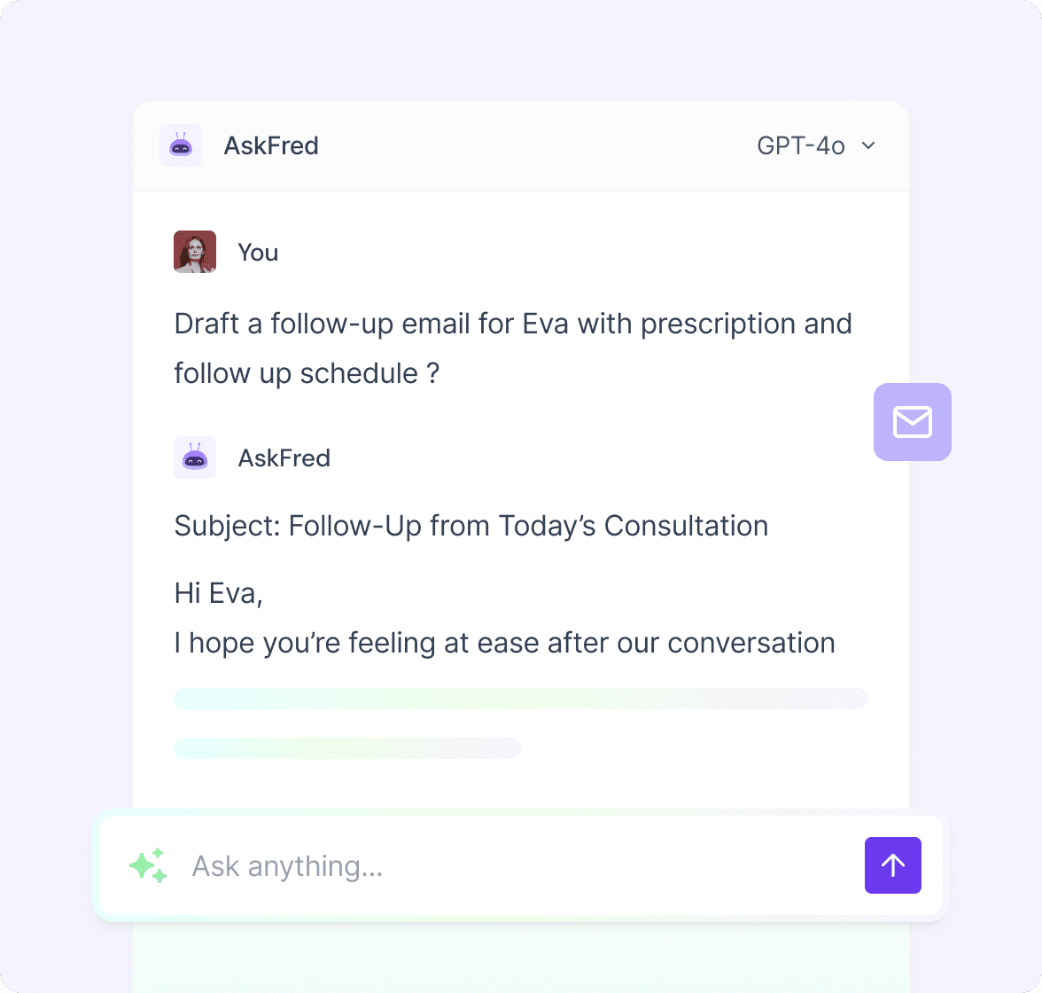 Auto-drafts post-visit summaries and personalized follow-up emails, keeping patients informed