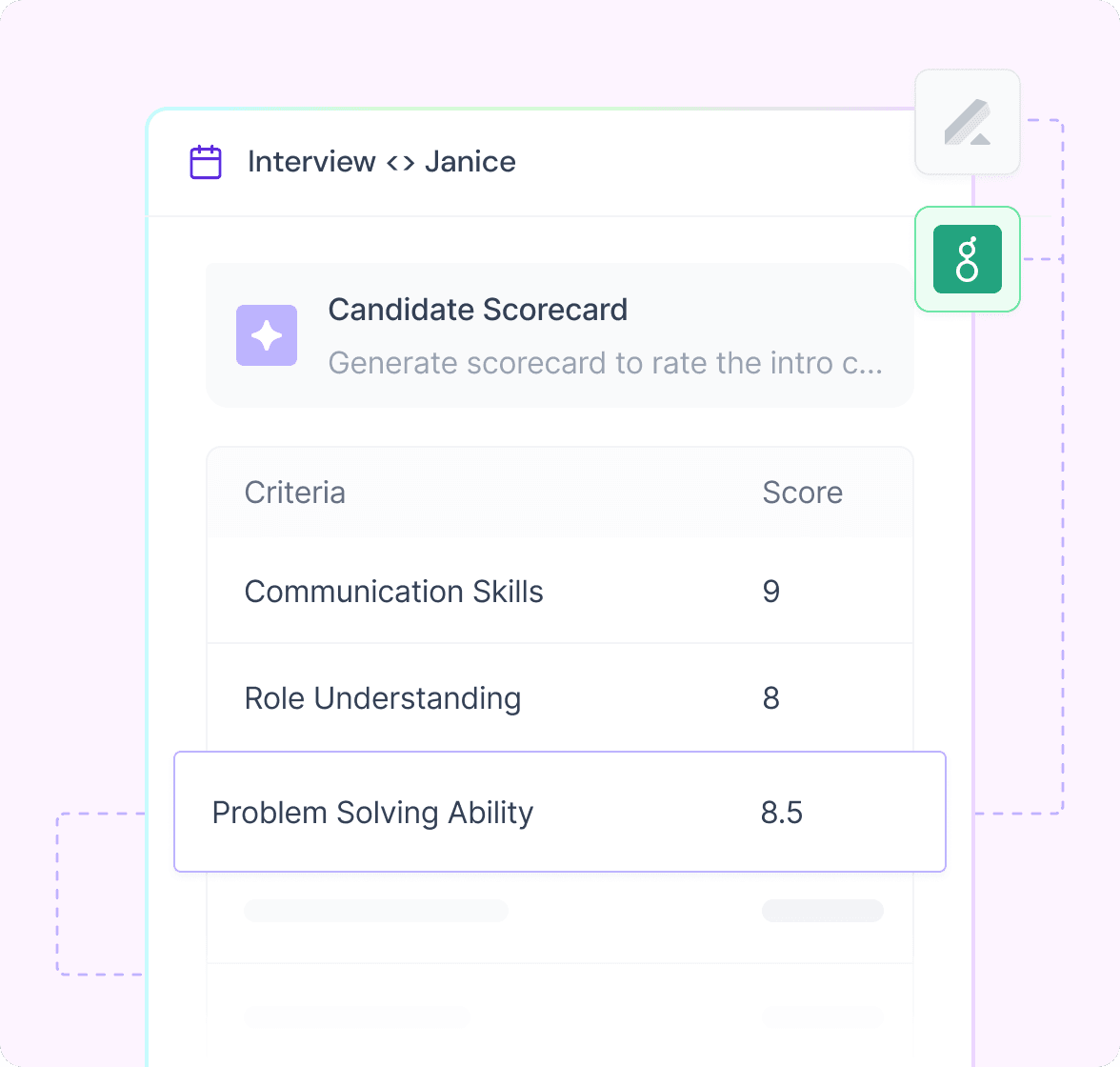 Sync notes, evaluations, and decisions with your ATS, keeping every stakeholder informed and your pipeline up to date.